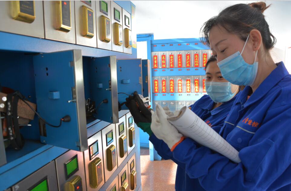 冯春玲是地煤精通兴旺煤业灯房的班组长,主要负责对全矿680余盏矿灯维修管理、自救器保养发放和便携式瓦检仪安全监测工作。她上班的第一件事就是擦拭检查每一盏矿灯,查看矿灯是否聚光,充电指示灯是否正常,发现红灯、失爆灯做好记录,并向值班人员上报维修,最终将光线、亮度合格的矿灯发放给准备下井的职工们。
